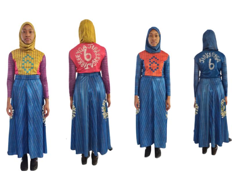 The number six is featured on some collection items and the word jirkeeyga is written in spirals on others, representing the scream that Yasmin gave at the time of her procedure. Also reflective material is used on occasion as a way of reflecting the night and day nature of the fight against FGM