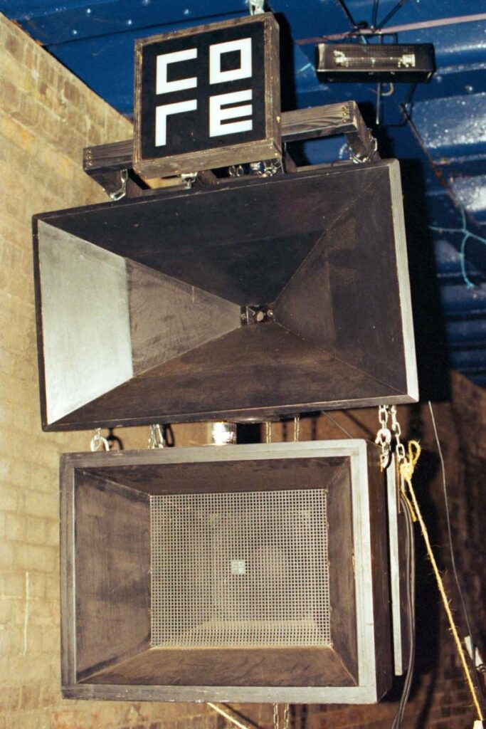 “I knew the borders of Hackney Wick and Stratford were home to various legal and illegal venues. The Napier was fairly well established at the time and various parties were also going off in different artists studios. Looking for somewhere a bit bigger, I stumbled across the EQ Warehouse on Waterden Road. There was an amazing mirrored tunnel entrance, a huge main room with the DJ booth taking centre stage, dance platforms on either side and two large bars.”