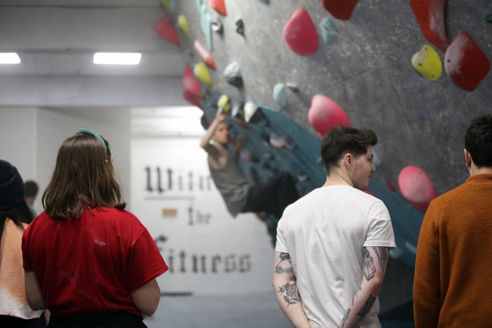 For many of its users, the social aspect of HWBP was of equal importance to the climbing itself: people would come to HWBP from across London specifically for the sense of community fostered by the centre. Along with regular climbing competitions, HWBP featured weekly ‘boulder socialite’ sessions in which experienced members mentored and supported fledgling climbers. Such informal support mechanisms were mirrored by publicly-funded programmes such as the ‘climbing for wellbeing’ sessions, a collaboration with Inner World Arts and Core Arts Hackney organised by local artist Pete Bennett which provided free climbing to improve the mental health of Hackney, Tower Hamlets, Newham, and Waltham Forest residents.